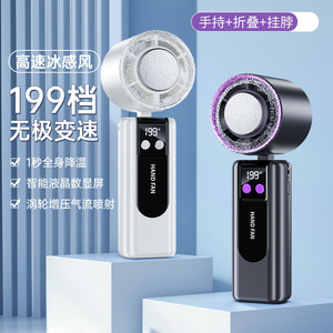 人気の半導体冷凍式ハンドヘルド小型扇風機、199段階風量調節、充電式・電源式両用、強風、学生の授業や地下鉄での使用に最適な小型風力発電機