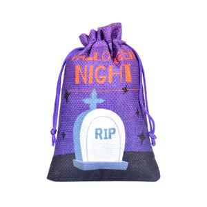 2025 新ハロウィン黄麻布ギフトバッグ巾着キャンディーバッグリネンバッグ子供のパーティーキャンディーバッグ