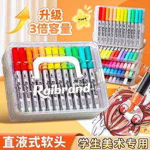 ストレート液体アクリルマーカーソフトヘッド学生アート 48 色水彩ペン不透明色積み重ね可能な 12 色ブラシ
