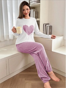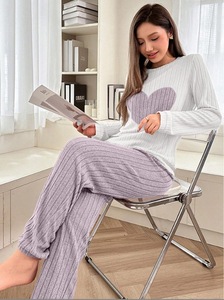 女性のための多用途ニットワイドレッグパンツ 2024 春と秋の新しいハイウエストドレープピットストリップカジュアルホームウェア 2 点セット