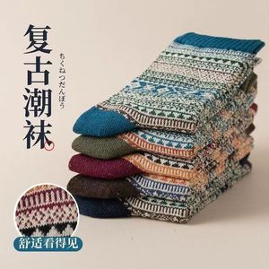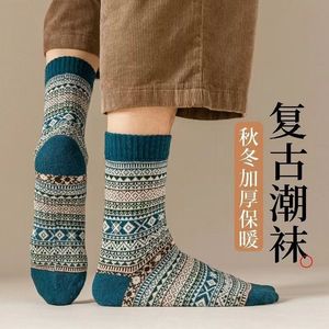 クロスボーダーソックスメンズソックスレトロエスニックスタイルミッドハイストッキング秋冬厚手暖かいソックス日本インストレンディソックス