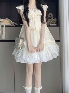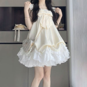 2025 夏の新フレンチスタイルの優しいスタイルのリボン小さなフライングスリーブドレス女子学生のためのルーズスリムフラワースカート