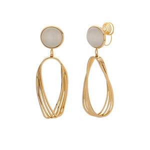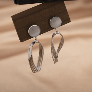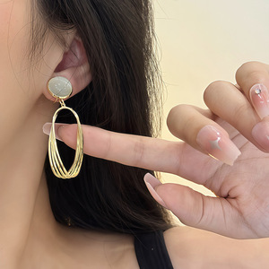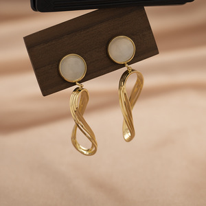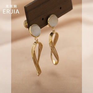 ツイストメタル幾何学ペンダントイヤリングフレンチレトロライト高級キャッツアイストーンハイエンド蚊取り線香ピアスなしイヤークリップ