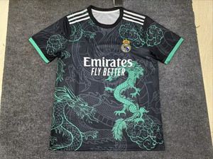 2526 レアル マドリード ブラック ラウンドネック グリーン ドラゴン