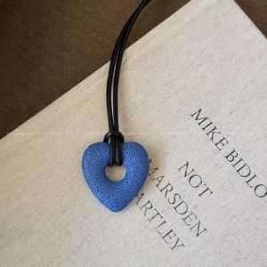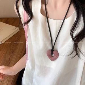 韓国ブロガーのパーソナライズされた火山石中空ラージラブブラックレザーロープロングインニッチシンプルセーターチェーン