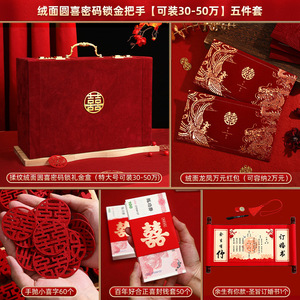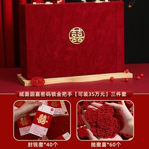 绒面圆喜密码锁金把手【超大号-可装30-50万元】五件套