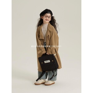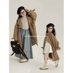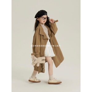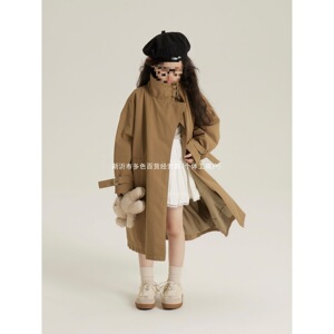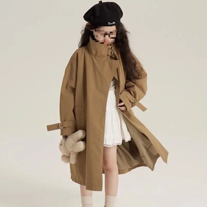 カジュアルマルチカラー女の子ロングコート中大型子供秋トップス韓国風子供服子供英国スタイルカーキ卸売