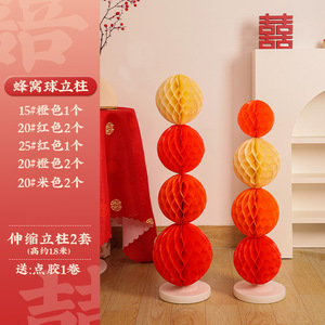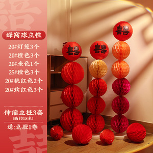結婚式の部屋のレイアウトセット男性と女性の新しい家の寝室のリビングルームの背景壁ラテアートハニカムボールコラム結婚式の装飾