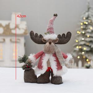 圣诞节新款粉色布艺坐姿站立公仔节日派对小礼物装饰用品玩偶摆件
