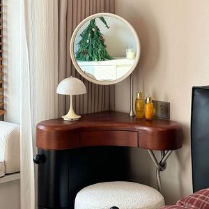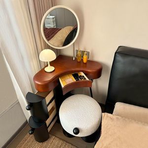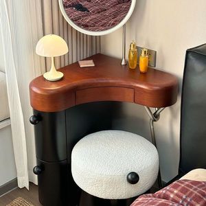 中古风实木转角梳妆台收纳柜一体设计师家用卧室带镜子拐角化妆桌