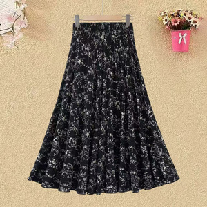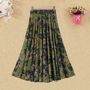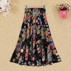 中高年ママ向け新作スカート、伸縮性ハイウエストカラフルロングスカート、夏用ミドル丈72ロングスクエアダンス薄手