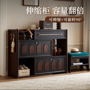 法式复古实木入户翻斗鞋柜新款家用中古收纳门口一体靠墙大气简约