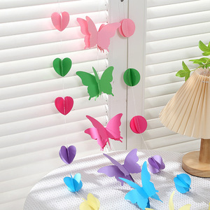 3D 立体カラフルな蝶紙ラテアート結婚式の部屋の装飾寝室リビングルームの背景装飾ロングストリングペンダント