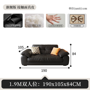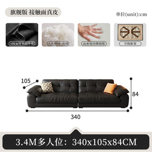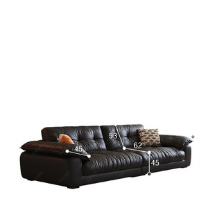 イタリアのミニマリストの第一層本革ソファリビングルームモダンシンプルレトロハイエンドブラックストレートレザーソファ