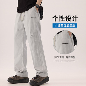 3つの防氷シルク速乾性カジュアルパンツメンズ夏薄い2025新しいルーズストレートトレンディなブランドアウトドアワークウェアパンツ