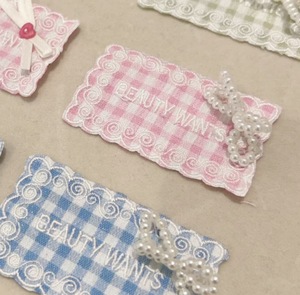 漫画刺繍レースメッシュガーゼステッカー韓国スタイルガーリーチェック柄リボン商標衣類バッグアクセサリー