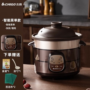 Chigo 全自動家庭用紫陶器健康スープとお粥電気シチューポット多機能ベビーシチューポット電気キャセロール