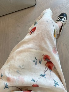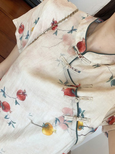 軽量ラミー新中国風スタンドカラーベベル前立てボタンザクロプリントチャイナドレス夏 G052411