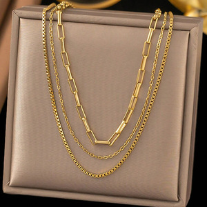 ヨーロッパとアメリカのINSレトロスタイルステンレス鋼ペーパークリップボックスチェーンステンレス鋼チェーンチタン鋼ネックレスリング三層ネックレスジュエリー