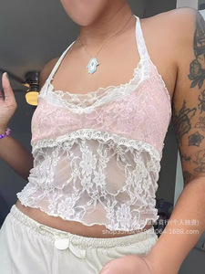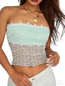 Amazon Y2k ヨーロッパとアメリカのファッション女性のボヘミアンチューブトップストラップレスセクシーな透明レースベスト
