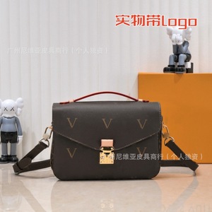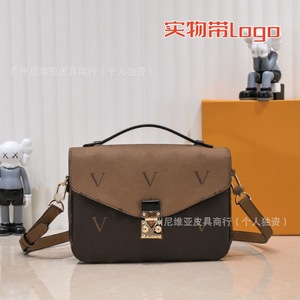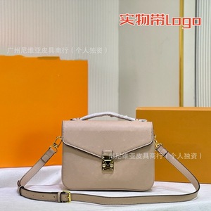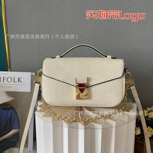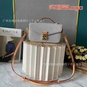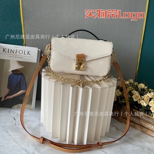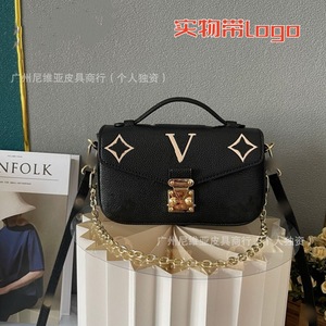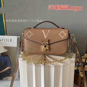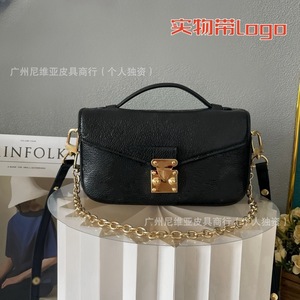 国境を越えた新型の伝統的な老花郵便バッグを提供するファッション百合真皮黄花手提げチェーンが女性バッグにまたがっている