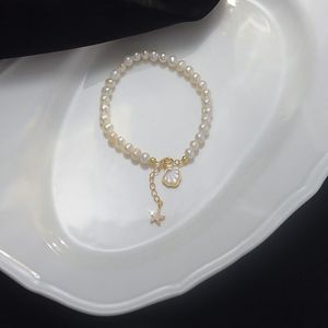 女性用バロック淡水パールブレスレット、淡水貝殻とヒトデ、女の子用ファッションアクセサリー、親友、インターネットセレブのハンドアクセサリー