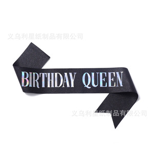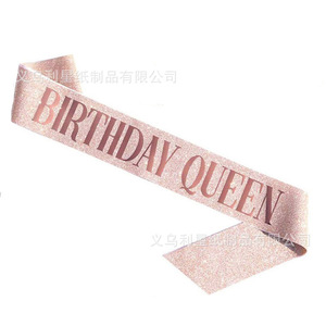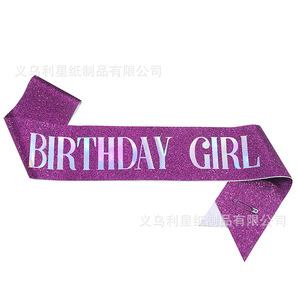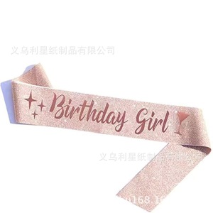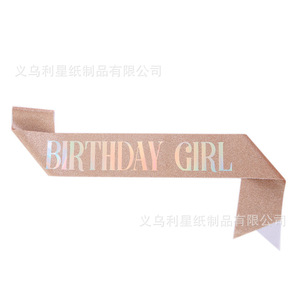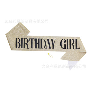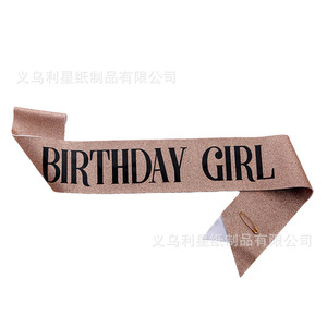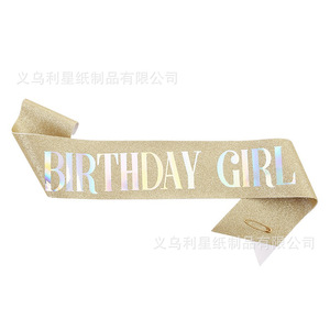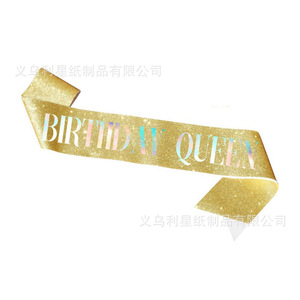グリッターリボン ホットスタンピング BIRTHDAY GIRL QUEEN ショルダーストラップ 女の子の誕生日パーティー ショルダーストラップ エチケットストラップ