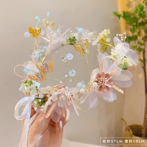 子供用ヘアバンドヨーロピアンスタイル妖精ゴールデンリーフヘッドバンドフラワーリースパールヘアバンドブライダル新しいクラウンリボン