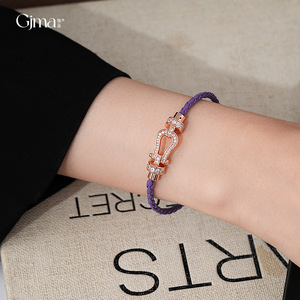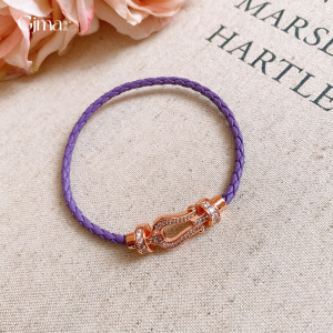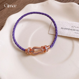 ジルコンパープルレザーホースシューバックル磁気ブレスレット、エレガントでハイエンドのブレスレット、ファッショナブルで軽い高級感、シンプルで多用途なブレスレット