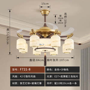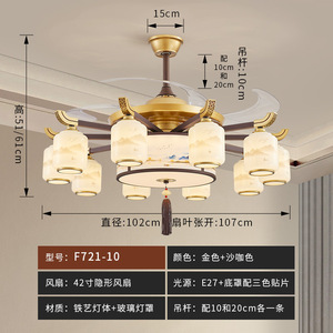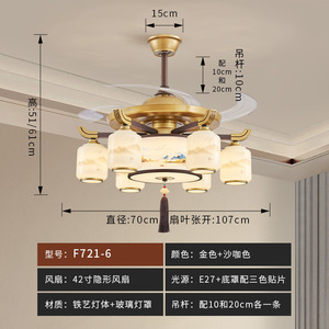 新しい中国風のリビングルームファンランプ中国風のレストラン寝室のシーリングファンランプLEDファンシャンデリアファンライト一体型