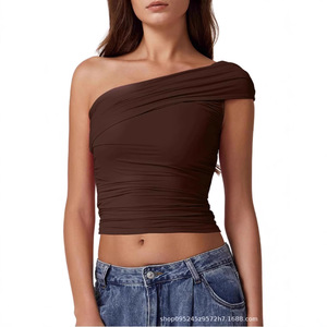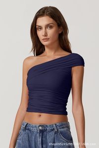 2025 Amazon ホットセールクロスボーダーヨーロッパとアメリカのセクシーなワンショルダーバストトップエレガントでセクシーなスリムショートベスト夏