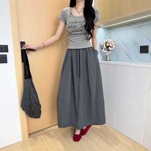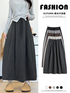 ダークグレーのスカート レディース 秋 2025 新作 ハイウエスト ドレープ感 Aライン ニットスカート 小柄さん向け パンプキン ライススカート
