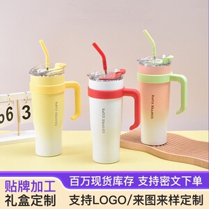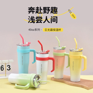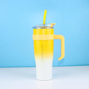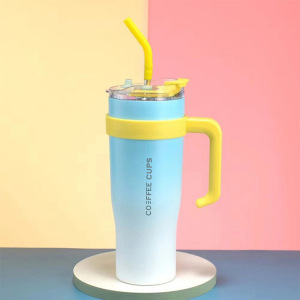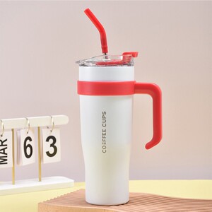 新しいファッショナブルでシンプルなステンレス製魔法瓶カップ、ハンドル付き、ストロー付き大容量アイスカップ、ポータブルカーカップ