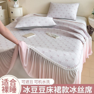 Bingdoudou アイスシルクマット 3点セット ベッドシーツ プリント 洗える 夏用 エアコン付き ソフトマット ベッドスカートマット