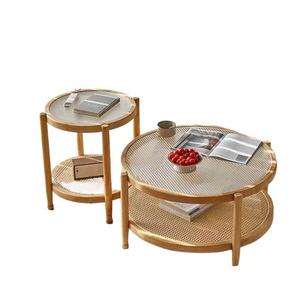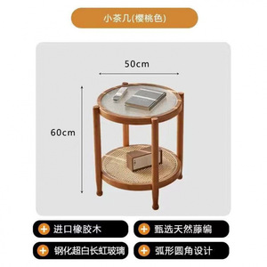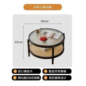 和風の小さなリビングルームのコーヒーテーブル北欧スタイルの無垢材籐織り長虹二層ラウンドシンプルなガラスコーヒーテーブルの組み合わせ