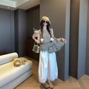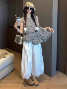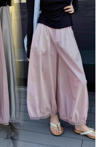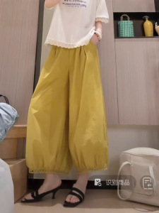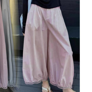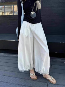 2025年新作夏ヨーロピアンスタイル中空レースデザインワイドレッグランタン9点パンツ