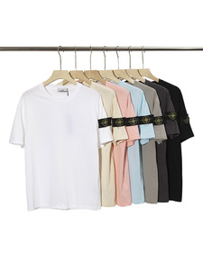 国境を越えた貿易トレンディなブランドのハイエンドSTONEアメリカンホットスタイルカフスロゴルーズラウンドネック半袖Tシャツ男性用