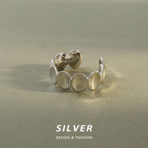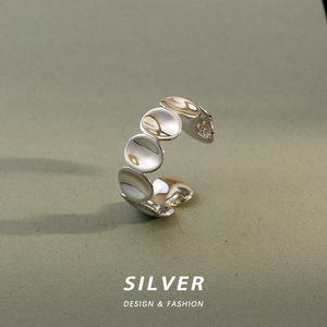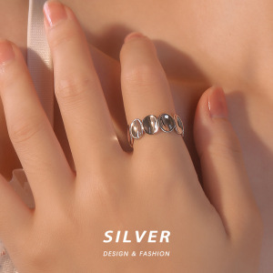 通体S925纯银椭圆片戒指女小众设计2023年简约高级感几何指环饰品