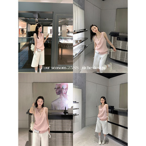 スポット欧陽不規則なツイストプリーツノースリーブベスト女性の夏の新しいデザインニッチトップ