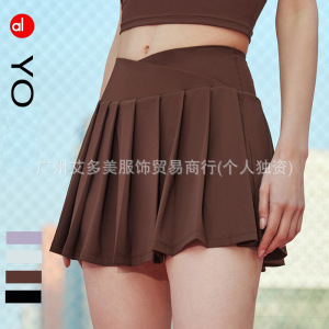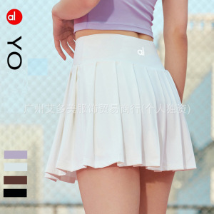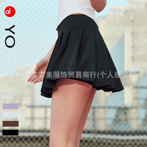 alo假两件百褶瑜伽防走光羽毛球网球裙高腰显瘦后腰口袋运动短裙
