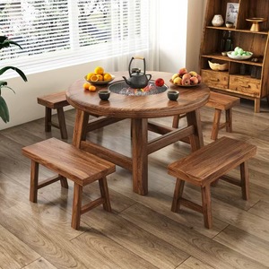 古いニレ材の炉茶テーブル、アウトドアキャンプバーベキューテーブル、バルコニー禅茶テーブル、無垢材バルコニー茶テーブル