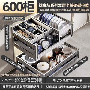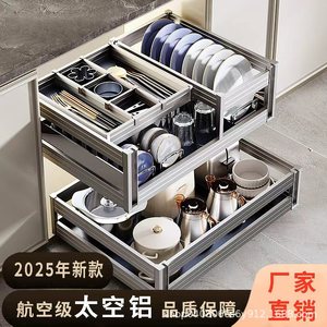 食器引き出しバスケットキッチンキャビネット内蔵二層引き出し式ボウルバスケットスペースアルミ合金キャビネットボウル