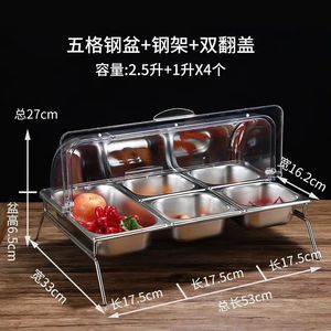 ステンレス製ホテルビュッフェディスプレイスタンド、蓋付きマルチグリッド、フルーツカット、調理済み食品、温かい食品、冷たい料理、煮込み皿
