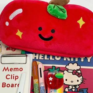 Xiaohongshu 人気のレッドアップル両面ぬいぐるみ鉛筆バッグイン大容量学生文具バッグ鉛筆バッグ収納袋