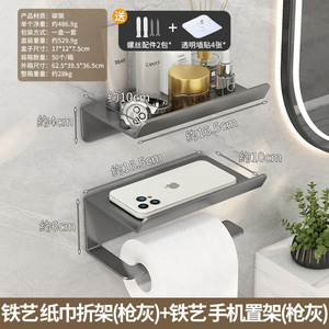 アイアンペーパータオル折りたたみラック(ガングレー)+アイアン携帯電話ホルダー(ガングレー)