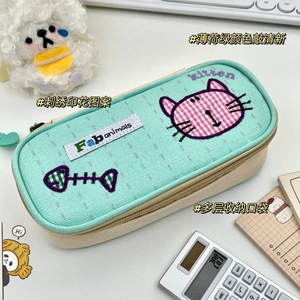 かわいいフィービー猫刺繍鉛筆バッグイン高価値筆箱大容量学生文具収納袋