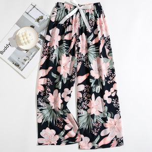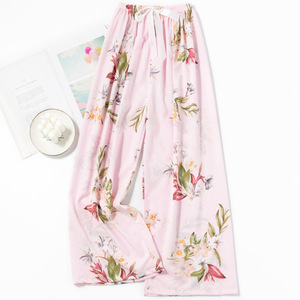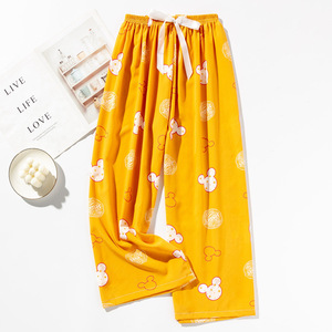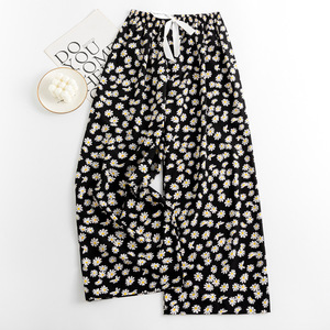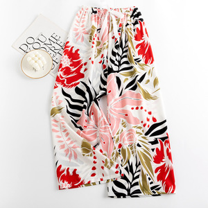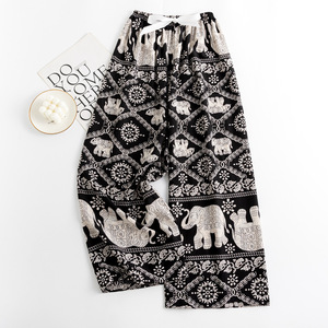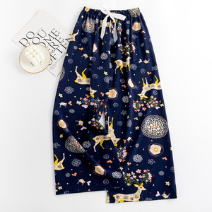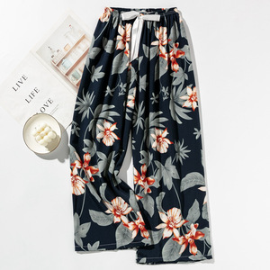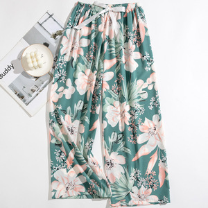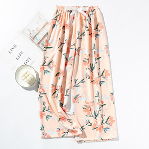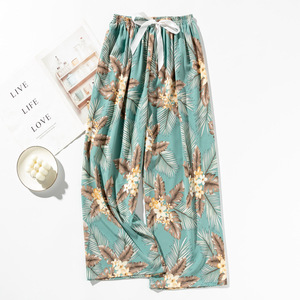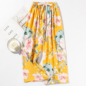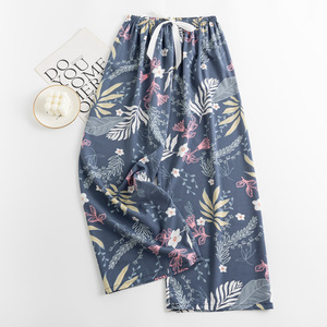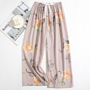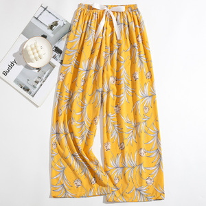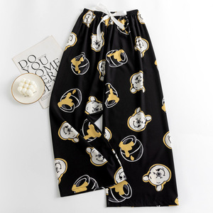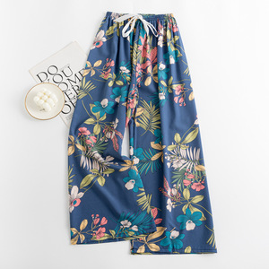 春夏の新作外国貿易綿シルクパジャマ女性の薄い快適なルーズ大きいサイズワイドレッグパンツウォールコットン漫画パンツ