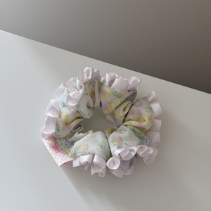 フレッシュな色のフリルの小さい花の大腸のシュシュの森系の少女の心のピンクの団子の髪のひもの甘い腸の輪の髪飾り