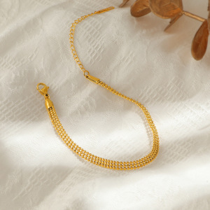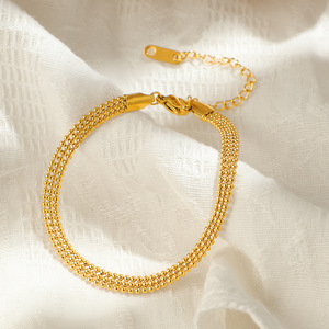 ネットの赤い爆発金のトランポリンのビーズのレースのブレスレットの女性の金の軽い豪華なチタンの鋼は18kの金の小さいビーズをめっきして手の串を編みます