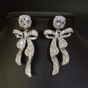 ライトラグジュアリーシャイニングリボンジルコンイヤリング女性のディナーウェディングハイエンドイヤリング誇張されたスタイルニッチ気質イヤリング